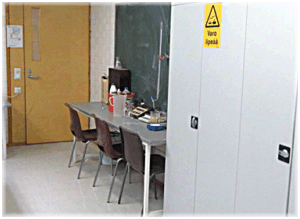 ja emäskaapit, analyysipöytä ja kulku käytävälle