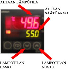 lämpötilaa lasketaan, painetaan keskimmäistä painonappia ( nuoli