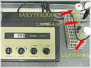 kalibrointiliuokseen 4 ja säädä pH-mittari näyttämään